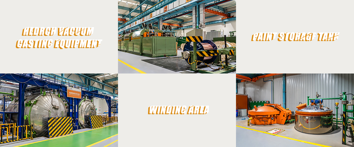 We boast an array of cutting-edge equipment representing a high standard within the industry, including a complete set of shearing machines, fully automated winding machines, robot-operated stacking machines, the Hedrch Vacuum Casting Equipment, vacuum impregnation systems, air cushion transport vehicles, a fully enclosed production workshop with a cleanliness level of 100,000, 20-ton vertical winding machines, 10-ton horizontal winding machines, coal-oil gas phase drying equipment, and a 200-ton overhead crane. We adopt the latest technology and processes to ensure that our products comply with international standards and customer needs.